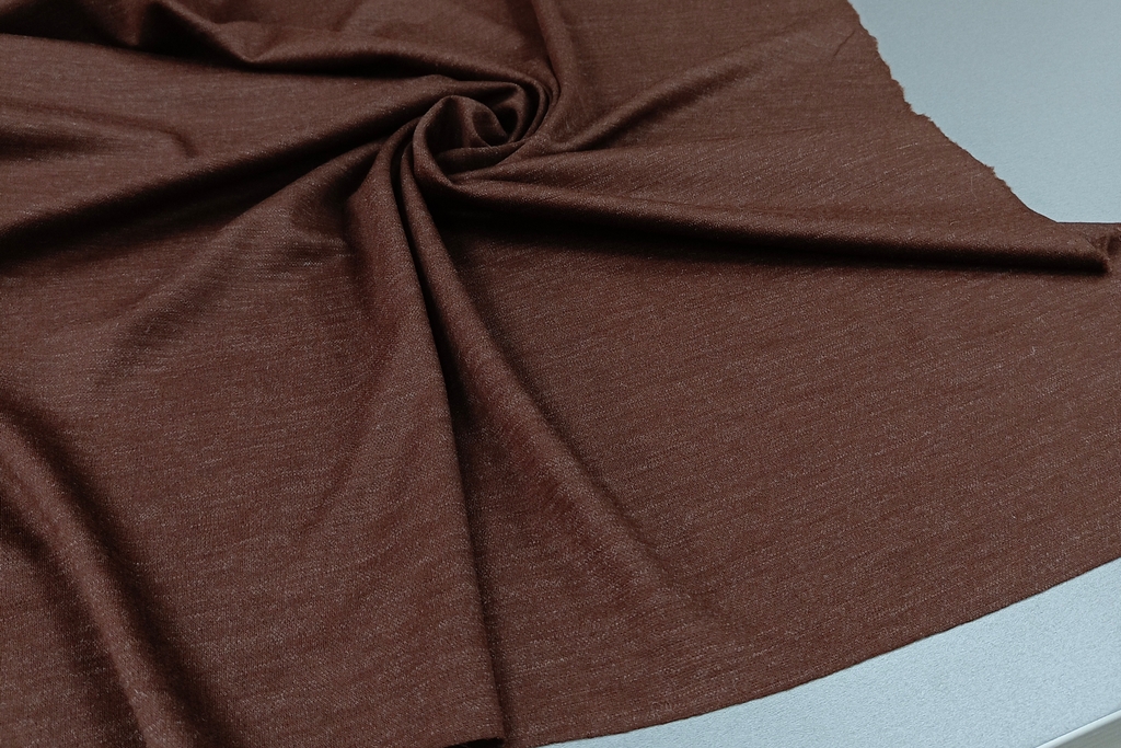 Трикотаж средней плотности вишневого цвета с вывязанной елочкой. Ткань мягкая и приятная на ощупь. Подойдет для пошива платья, свитшота, юбки или кардигана.