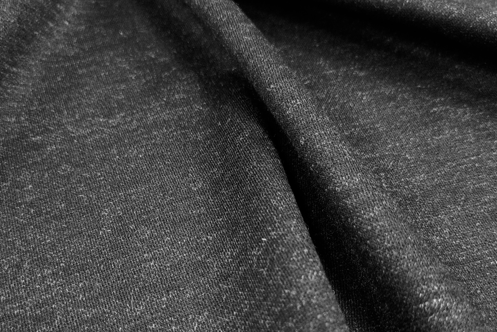 Итальянское черное джерси. Полотно эластичное, мягкое и приятное на ощупь ткань, которая хорошо тянется и не стесняет движений. Эта ткань хорошо держит форму, не пиллингуется и долго сохраняет свой первоначальный вид при должном уходе. Она пропускает воздух, впитывает влагу и быстро высыхает, что делает ее комфортной для ношения в любое время года. Из джерси шьют разнообразную одежду, такую как футболки, майки, свитера, платья, костюмы и даже верхнюю одежду.